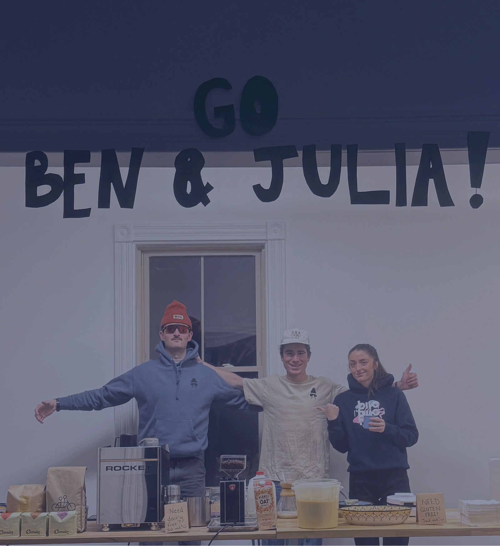 Armed with espresso (in honor of Ben’s deep and unwavering love for a good shot), Norwegian waffles, handmade signs, and just the right amount of glitter, the crowd poured in. The energy was contagious, the cheering relentless. Julia later told us she could feel it, and that it carried her into the finals.