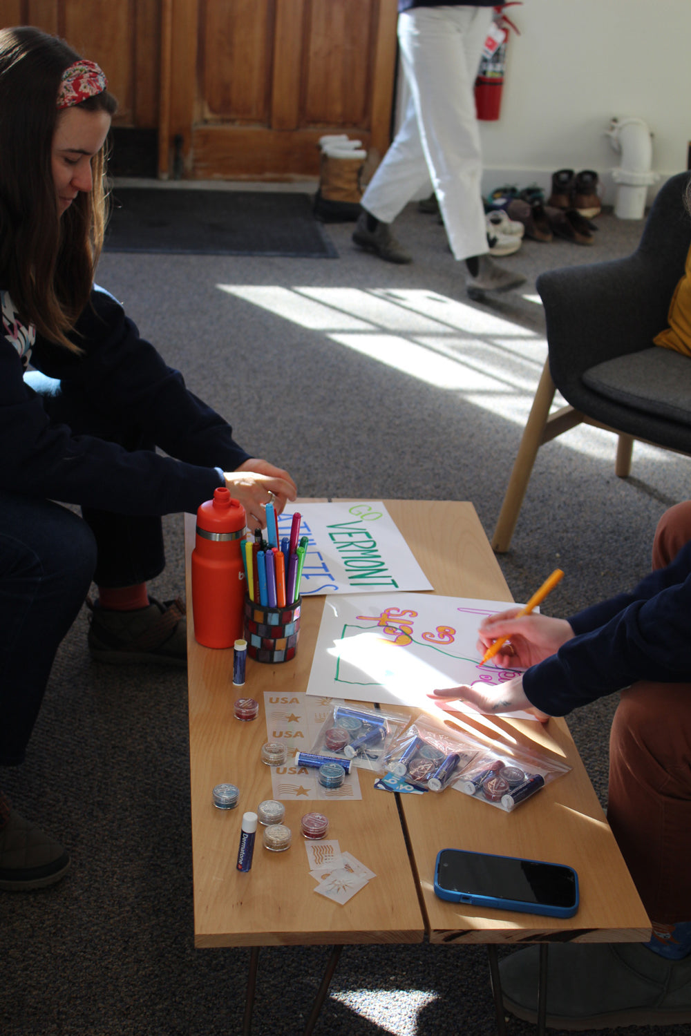 Pictured above: The Sams cooking up some coffee for the crowd. We made tons of posters, waffles, and glitter tattoos to celebrate!