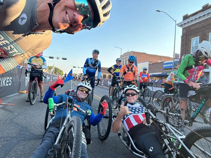 And, just a couple months ago, longtime BaseCamp athlete Joe raced Gravel Nationals. Joe is a para athlete, and was looking for a ‘shadow rider’ to help grab aid station snacks and assist if he had a mechanical. He put a call out to our BaseCamp alum group where a fellow rider, Dan, gladly agreed to help. Joe lives in South Carolina while Dan’s Iowa based, so they met up for the first time in Nebraska for the race. It was a huge success, with Joe taking the win and taking home the USA jersey! They even ran into a couple additional BaseCampers and celebrated together. As Joe shared, “This bike "weekend" was my best of 2024 for sure. Not because I got a cool new jersey but the time spent with Daniel, Lorri, and Natalie made it extra special. The BaseCamp community is like no other.”