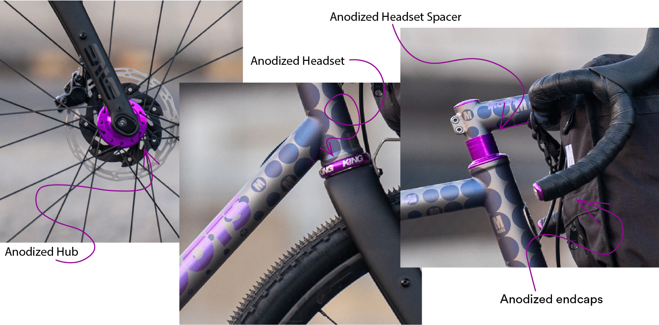 This electrochemical process creates a protective, decorative oxide layer on the metal’s surface. The oxide layer, 1.8 to 30 microns thick, has an iridescent quality that gives bikes and their components that groovy sheen.