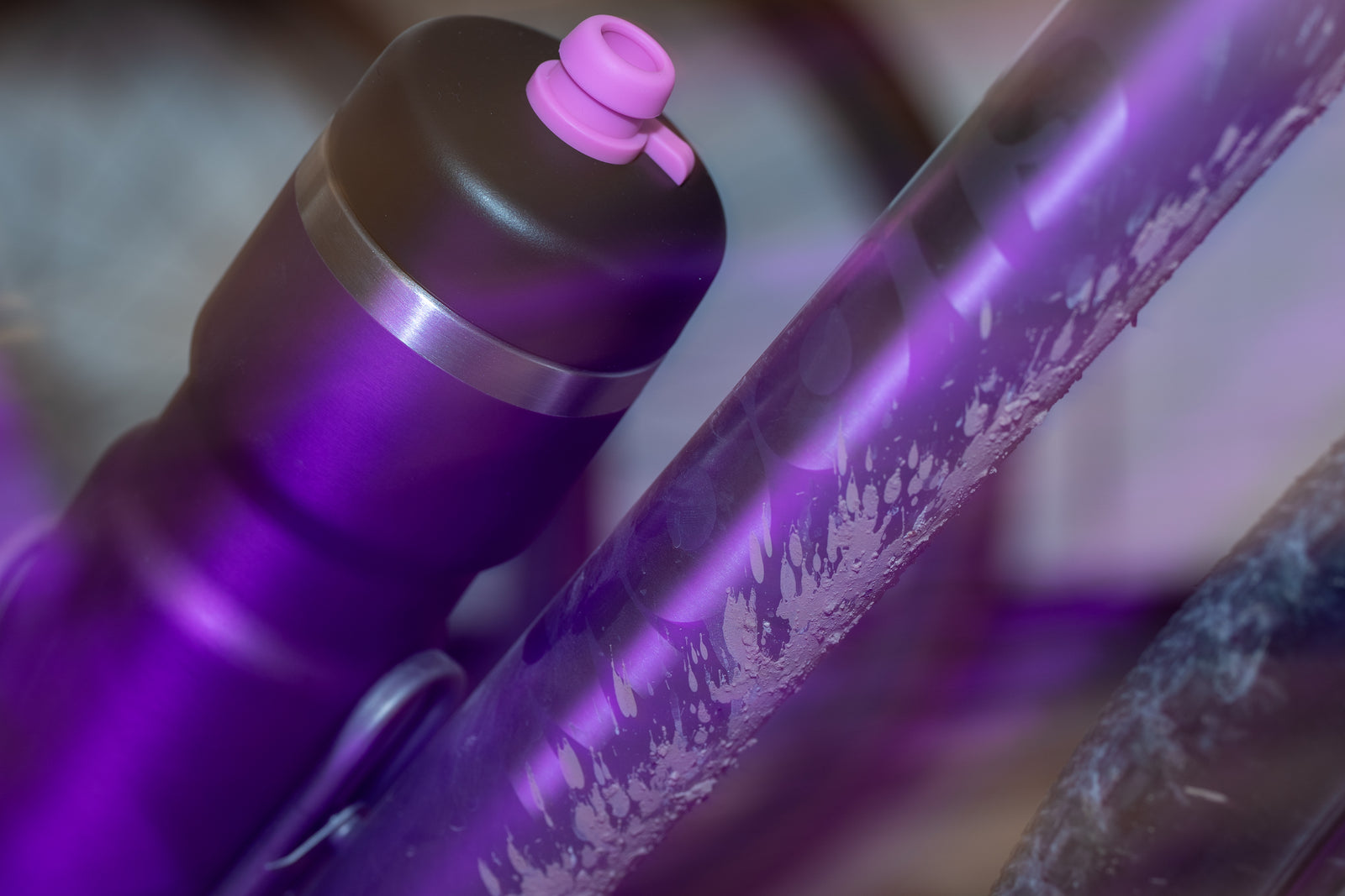 Today, we're launching a brand new Purple Metallic bottle! We made a super limited quantity and each bike water bottle comes with two nozzle options (black and pink) for extra bling.