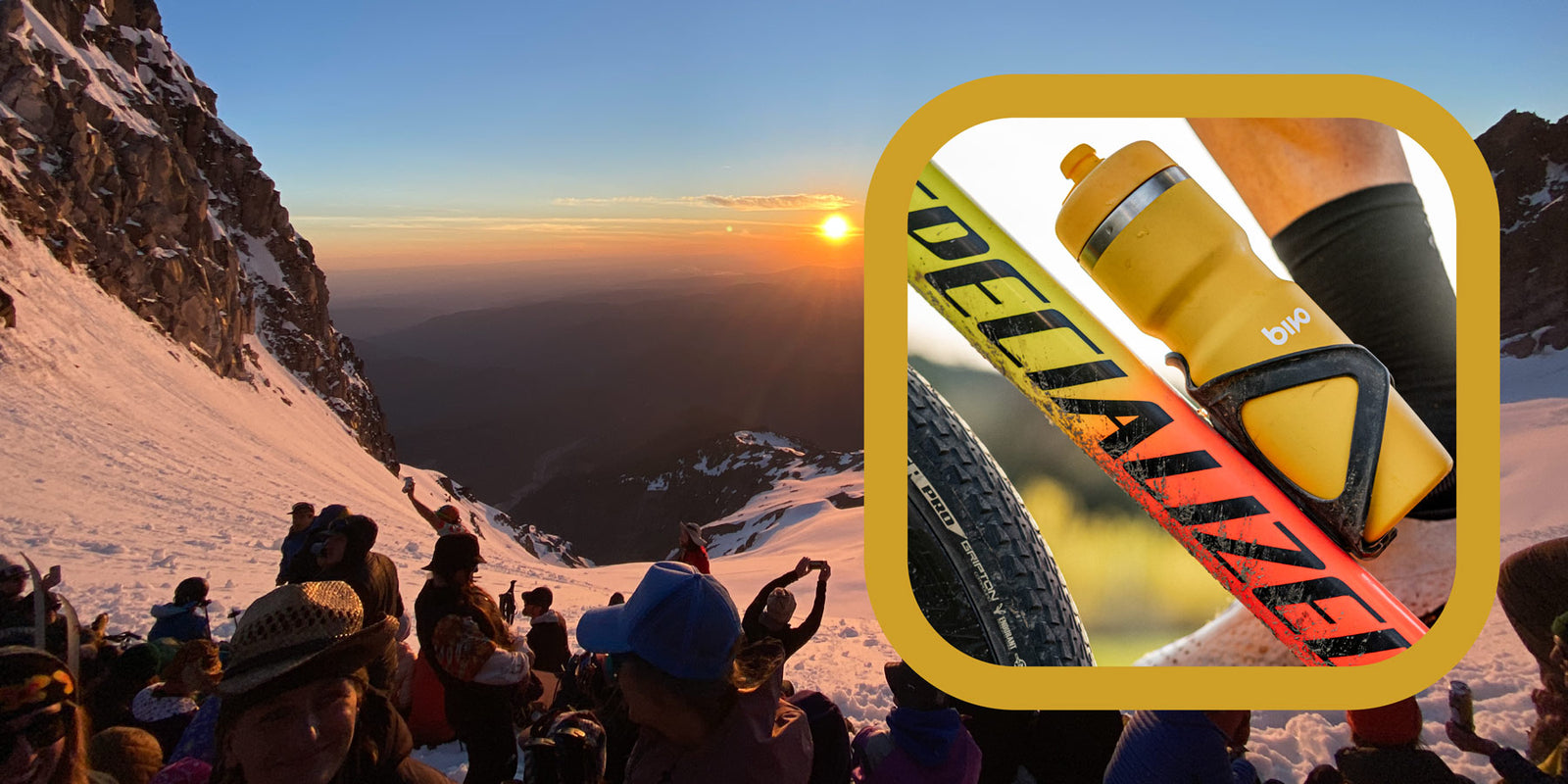 Peter lives out in Hood River, pushes hard every ski season, and he celebrates the end of it on the longest day of the year, as he joins hundreds of other skiers to hike up Mt. Hood to watch the sunset. Beautiful AND fun!