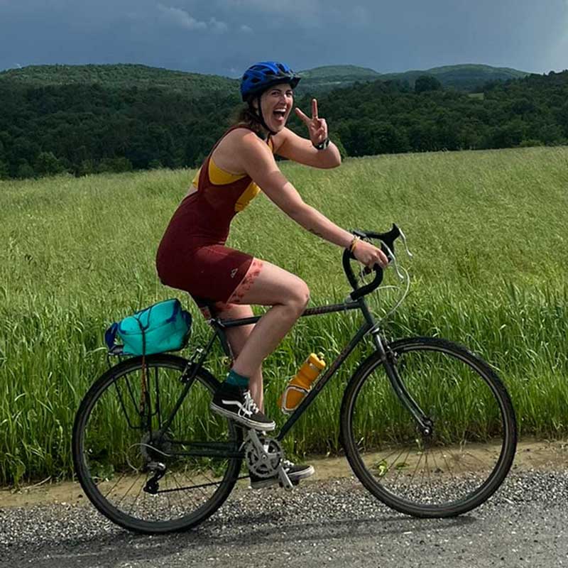 Kate Kuzminski is a certified strength and mobility coach living in Burlington, VT, whose main goal is to keep athletes pushing and adventuring hard. Her perfect summer day includes either a gravel ride or hike, followed by a trip to a refreshing swimming hole, and by a burger from a local VT eatery, shoutout to the Rez in Waterbury. Can’t get much better than that!