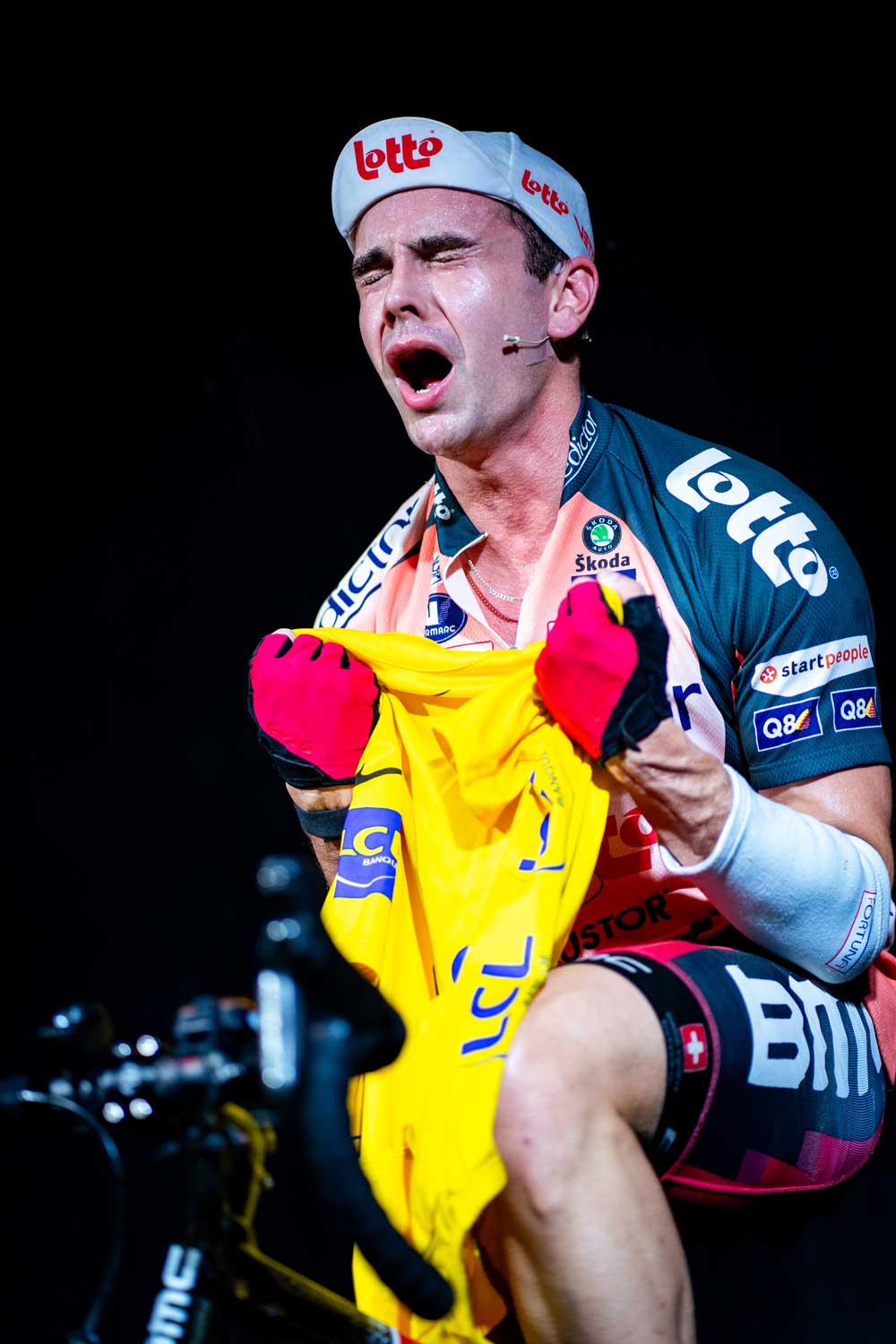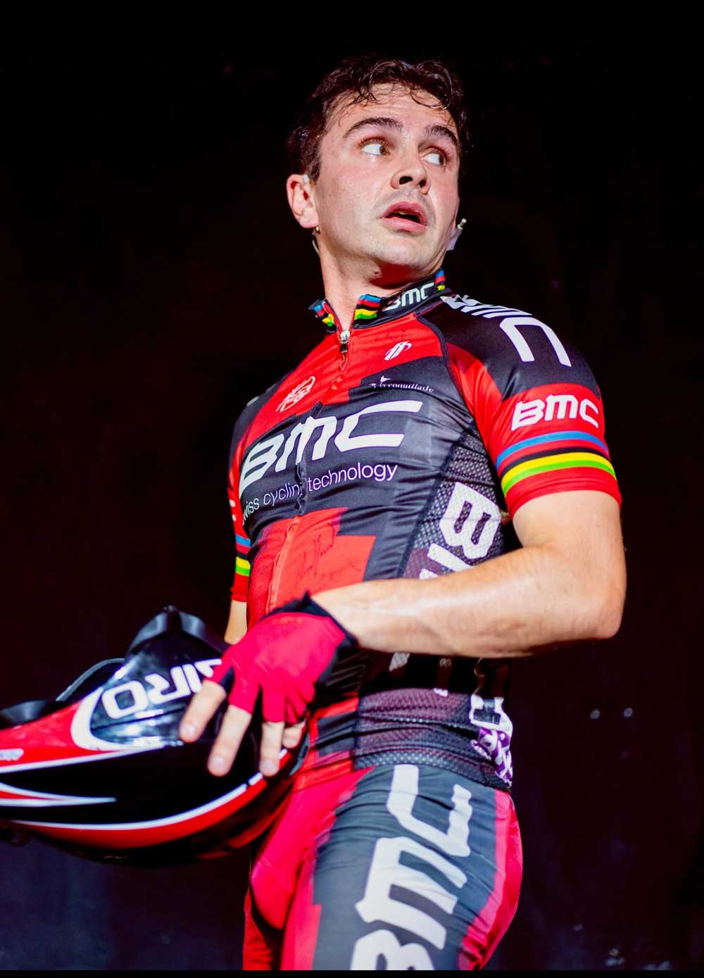 It’s about Cadel’s life, with a heavy focus on that 2011 winning Tour de France and the unbelievable obstacles he had to overcome in getting there. Truly. A remarkable feat. It’s framed within that historic time trial that rode him into the lead and yellow jersey. We flash back to all the events that got him there and show some of the true difficulties he faced in his career…many that people had no idea about. I ride live on stage…for the whole show. So it’s truly bringing theatre and sport together, like never before. I am an athlete and an actor and I get to tell this epic story in melding these worlds.