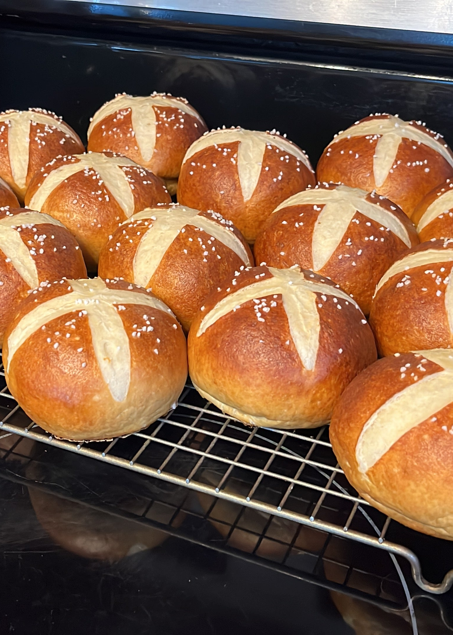Sourdough boules, sandwich loaves, English muffins, and pizza doughs are staples on our household menu, but so are pretzel buns, waffles, pancakes, and cookies. I spent my childhood on Long Island, so of course, bagels are next on the list. Oh, and my wife has requested I figure out inclusions so she can have a cheddar jalapeño loaf. Me? I’ve been partial to the bacon boules boosted with about 20 g of bacon fat – toasted with a good avocado spread. Yum, yum.