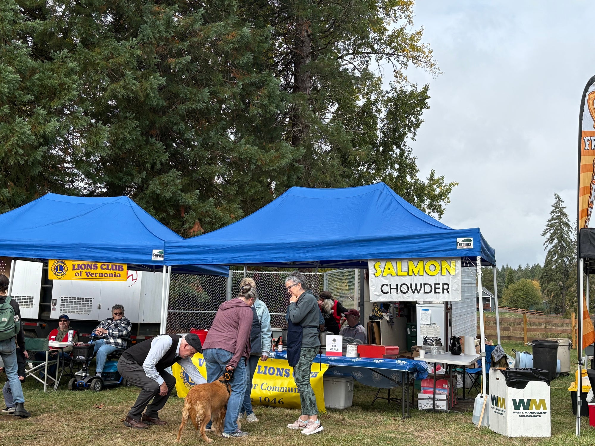 This time of year, the turning colors on the trees are worth the ride alone, but what we all really head north for is the salmon chowder that the local Elks Club puts together. Awaiting us is a big pot of salmon, vegetables, and spices folded into a creamy broth that usually hits just right after what can be a ride tempered by an early fall chill. We usually all crowd around a couple of picnic tables and stack our bikes for a half an hour perusing the vendor stalls and enjoying a cup of chowder.