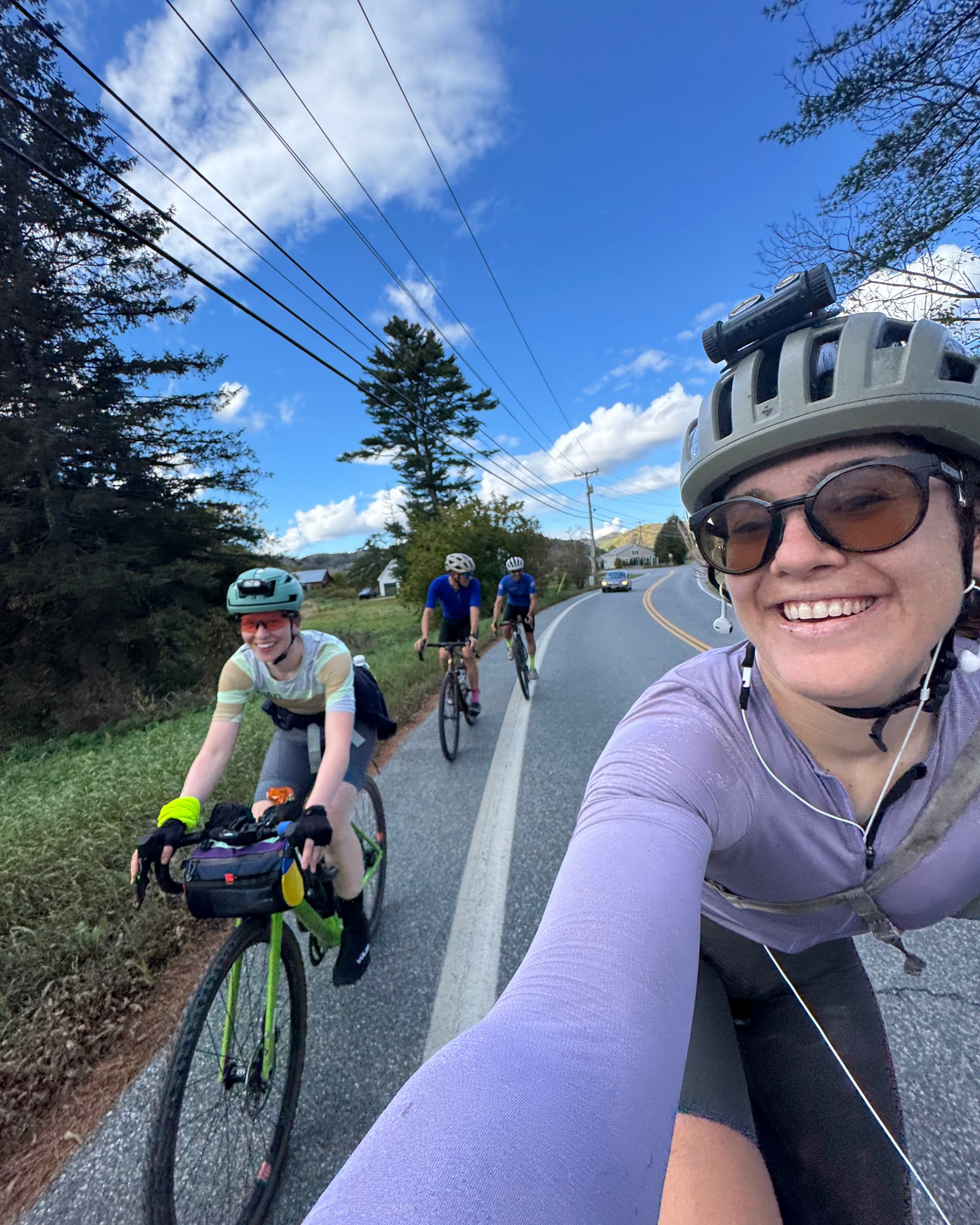 The miles that followed were a pendulum swing between euphoria and survival. There were moments when the ride felt magical: the golden light filtering through the trees, the laughter shared with other riders, and the quiet satisfaction of moving forward hour after hour. But there were just as many moments that broke me down. The Curtis Hollow climb left me dizzy and sick in the heat. The Glastenbury hike-a-bike nearly broke me under my own bike’s weight. At one point, I was sitting in a field at 5am convinced I couldn’t keep going, until the sun rose and silently reminded me that I could. There were the small miracles like the Vermont Country Deli breakfast that felt like salvation, a kind stranger offering cold water and dogs to pet, the sparkling cider I saved for the top of Braintree Gap. The ride demanded everything, but in giving it, I found a strange kind of peace. I learned that suffering comes in waves, and so does joy, and, if you just keep pedaling, the suffering will eventually pass.