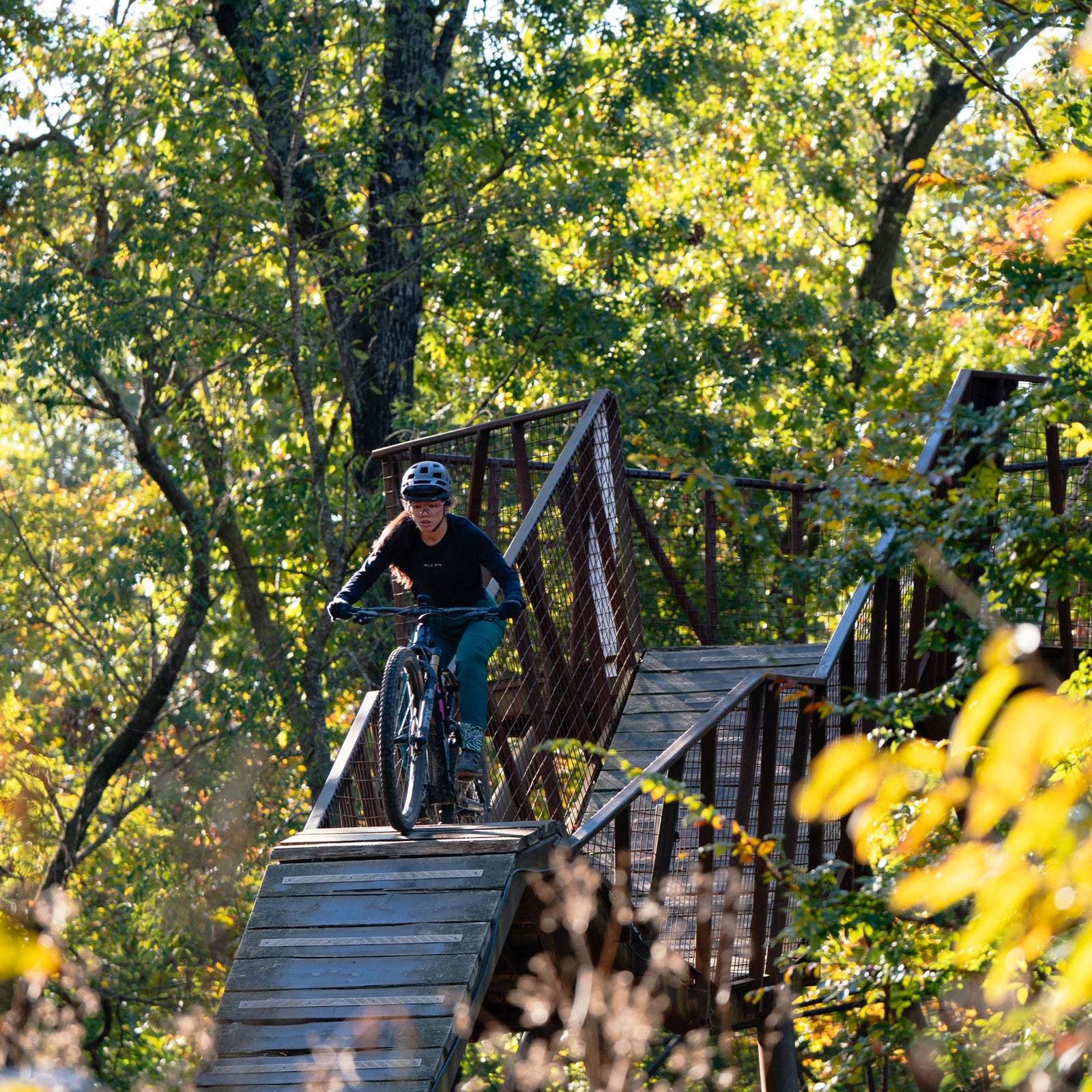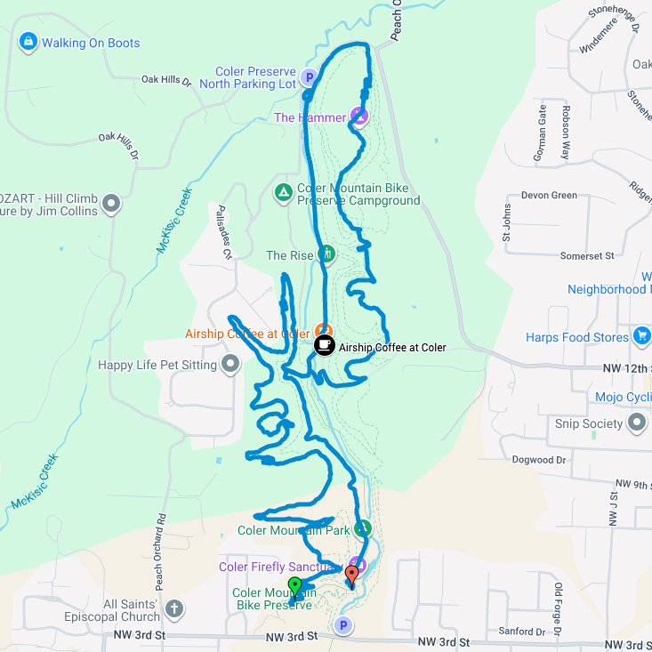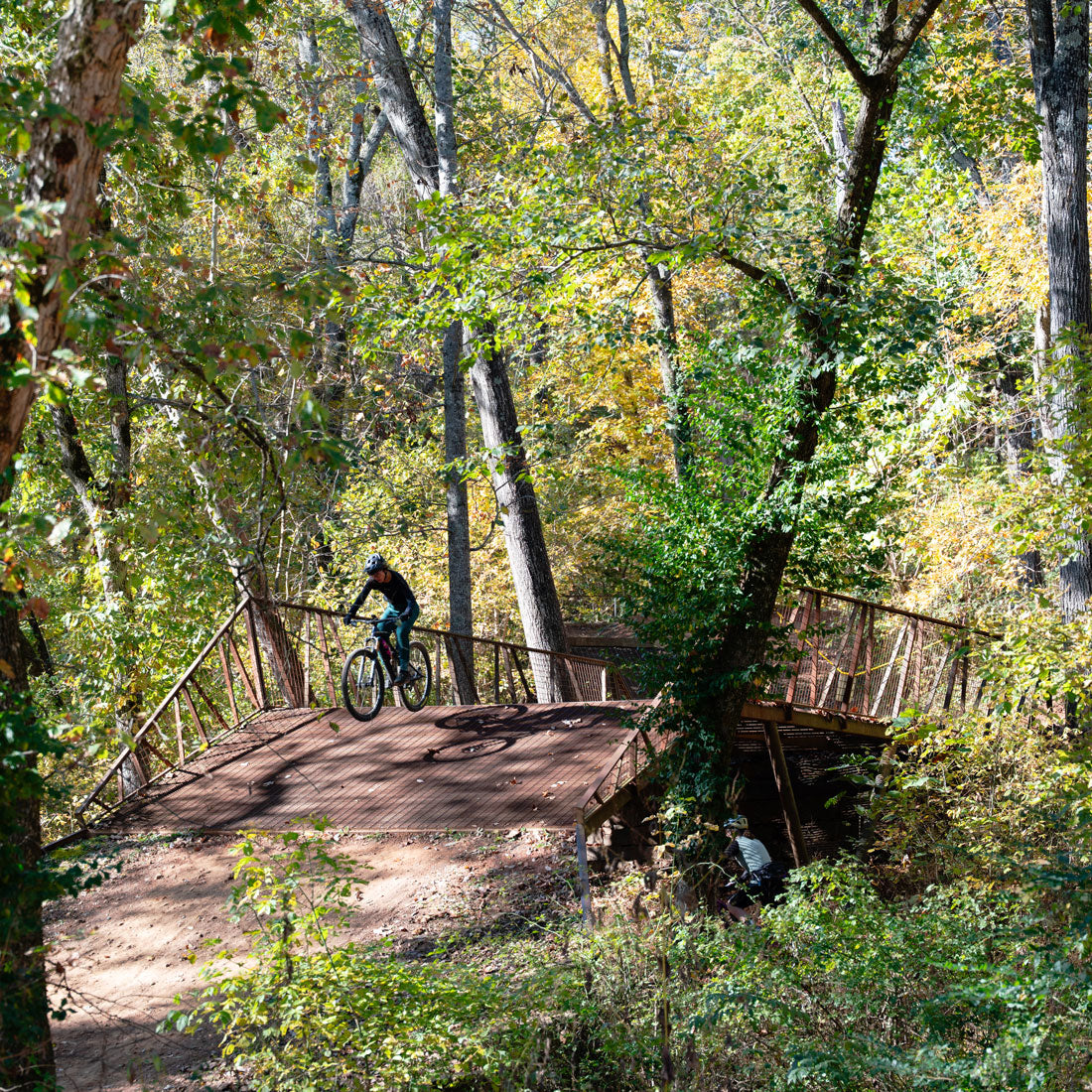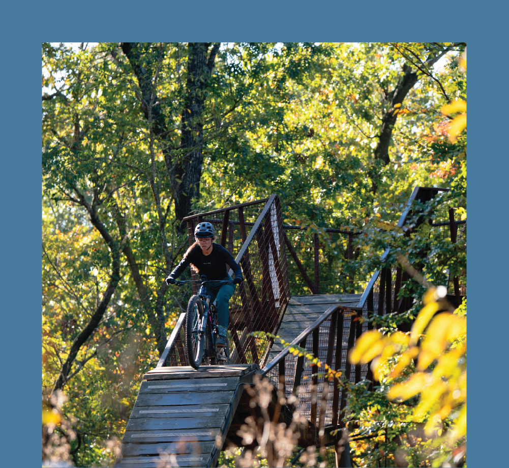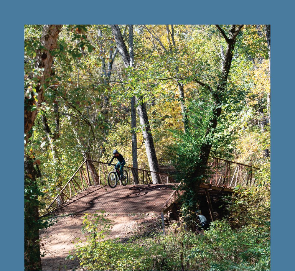 The expansive trail system stretching far across Northwest Arkansas is easily accessed right from downtown Bentonville. Meaning, you can walk right out of your front door, hop on your bike, and ride straight to your favorite trails anytime. This could be your daily rhythm for a week and you would still find new trails to satisfy your adrenaline itch. Whether you enjoy riding flow trails, XC, the paved greenway, downhill, or laps on the jump lines, Bentonville has it all. One of the best parts of riding in Bentonville is the variety in the trails that are approachable for any skill level. If you are looking for a place to take the family, the beginner skills park, pump tracks, and chill lines are perfect for the kids. If you are an experienced rider looking for something more thrilling, the jump lines and advanced trails at Coler, Slaughter Pen, or Handcut Hollow will be more your speed.