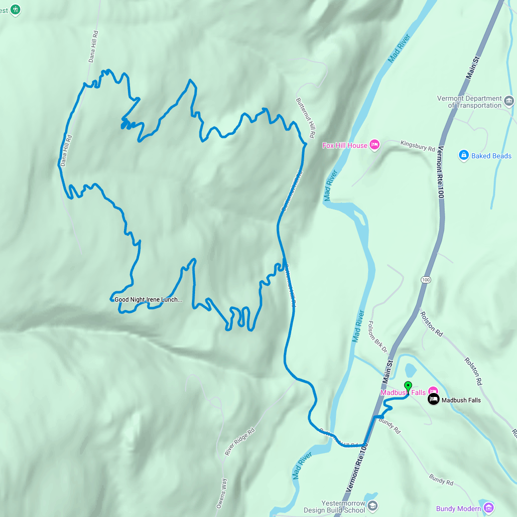 When spending the night in Waitsfield, Madbush Falls is the place to stay and begin all your adventures from. Located three miles south of town, it has everything you need to complete the perfect weekend: the option to sleep in a hotel room, private cabin, or tent, locally sourced breakfast, lunch, and dinner, running, riding, and swimming right out the door, and their very own bike shop, Riders Outpost.