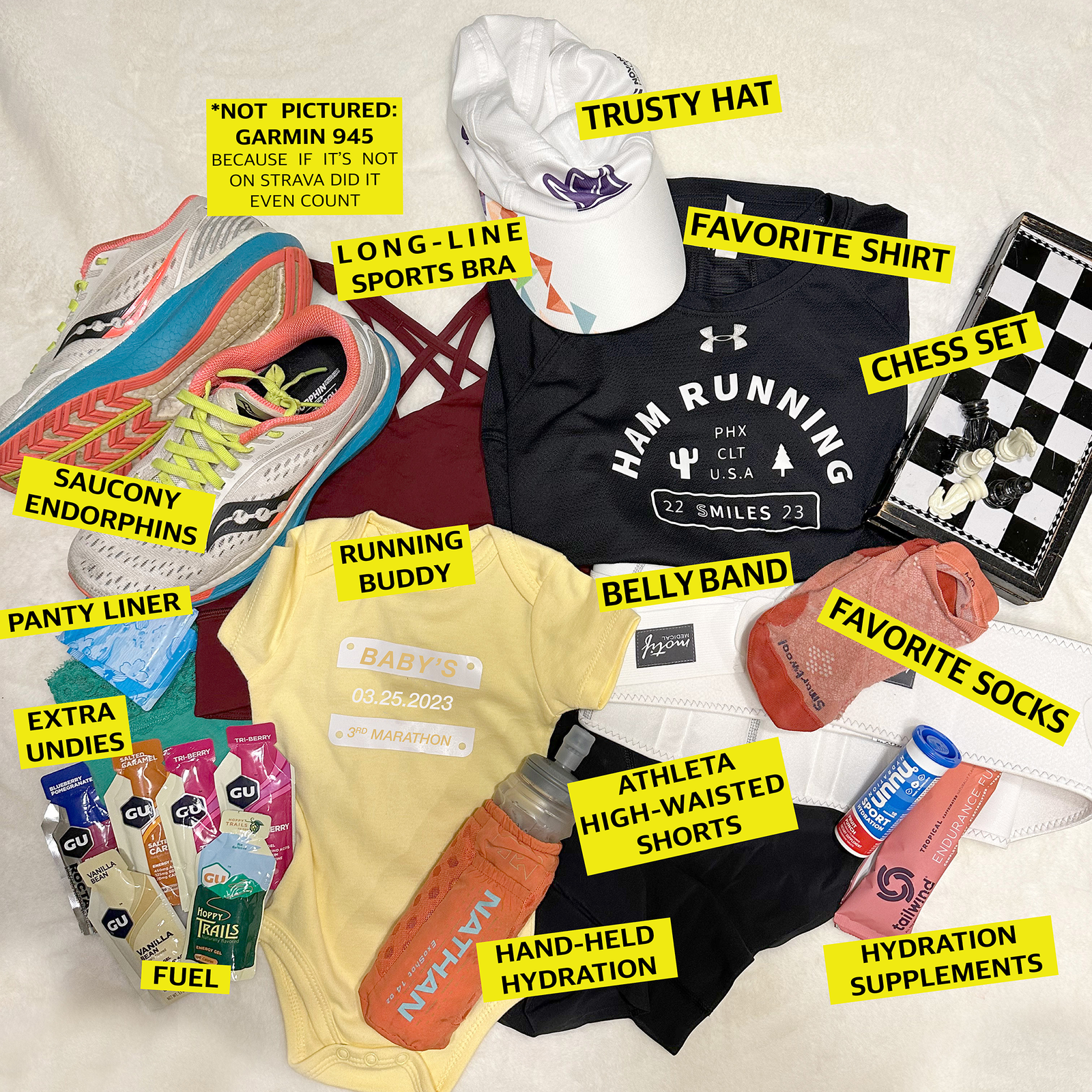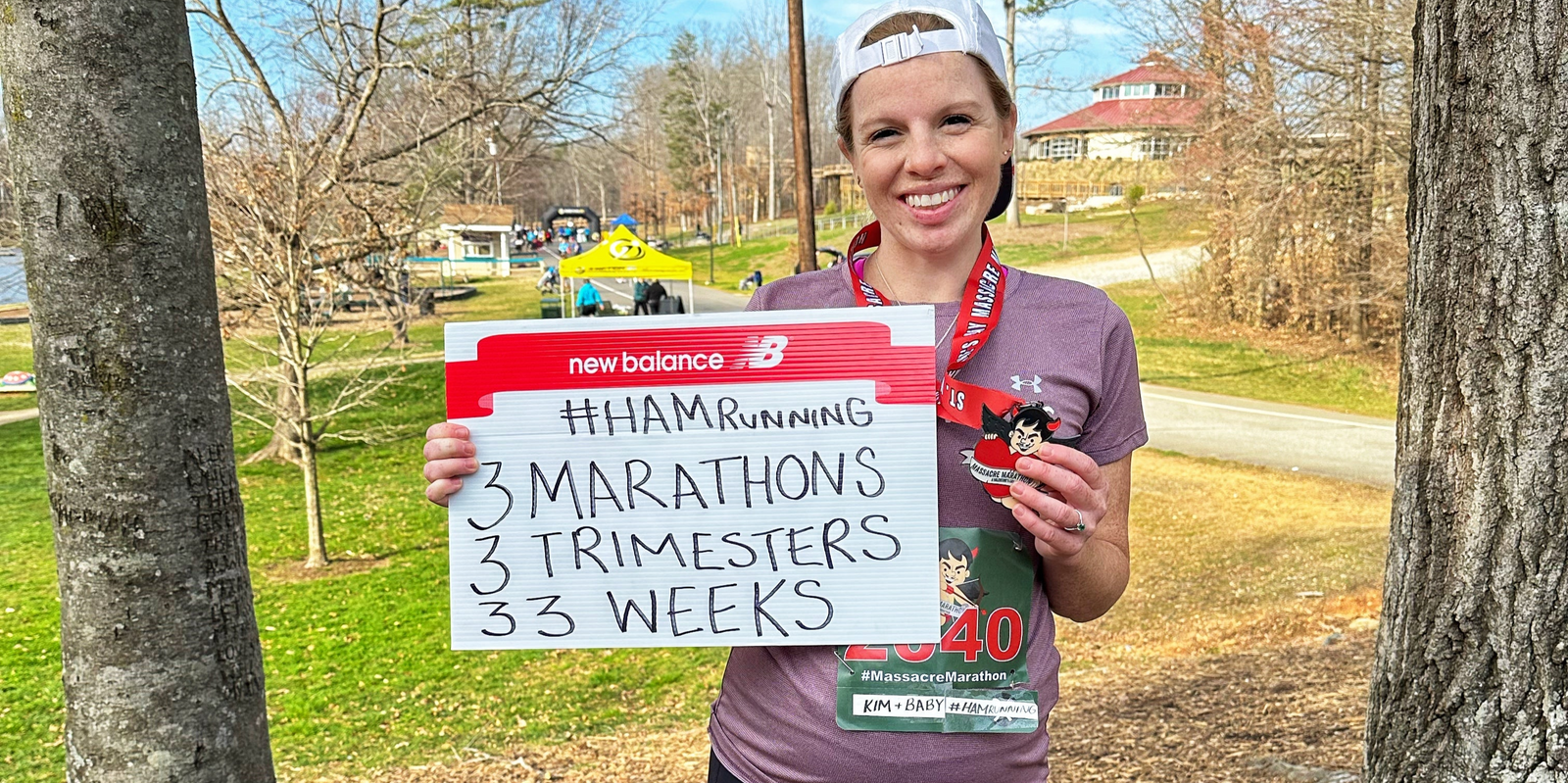 Ever wondered what it took to run a marathon 33 weeks into pregnancy? This is what Kim used to run her third marathon of her pregnancy.