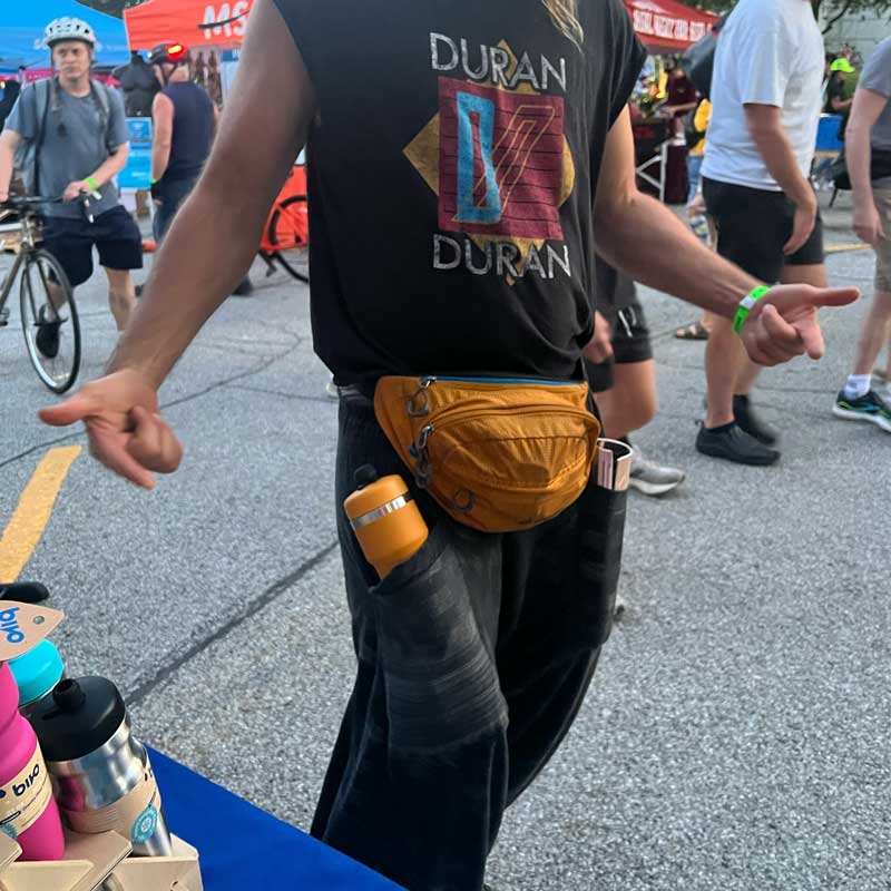 One man was so excited to buy a Mango bottle, because it perfectly matched his fanny pack. 10 minutes after he bought his first bottle, he came back to buy a second, Capri bottle, because the blue tones matched the blue zipper accents on his pack.