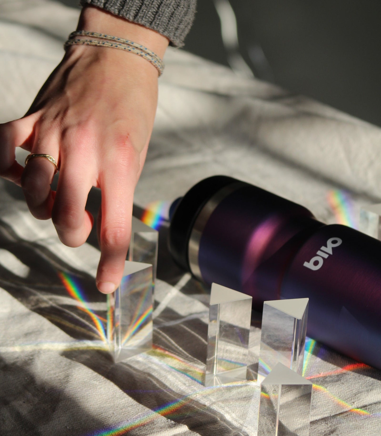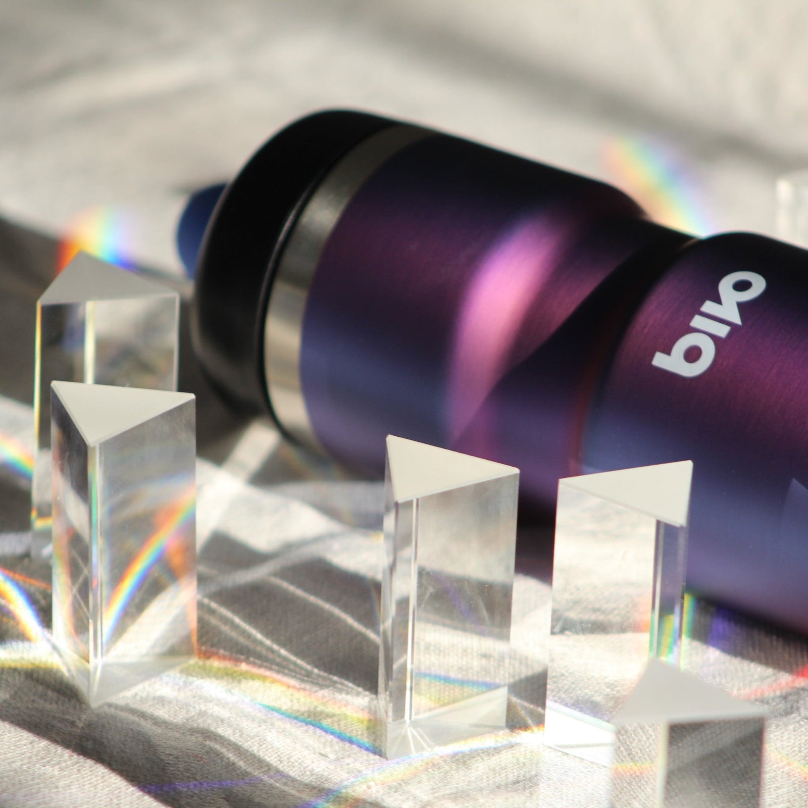 While our new Prism bottle does not, of course, refract light in the way a glass prism does, we chose the name for its surprising and ever-shifting colors. Truly, the bottle looks different from every angle!